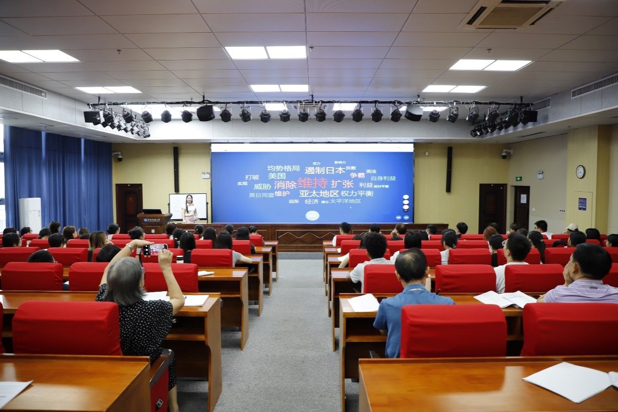 赵师苇老师以“华盛顿会议的形成、影响与实质”为主线,系统解析了华盛顿体系下的东亚格局与国际秩序,并引导学生深入思考国际体系演变及“百年未有之大变局”的历史意涵。在研讨环节之前,她详细阐述了《国际关系史》课程的教学设计思路,包括基于OBE理念构建课程框架、针对大二学生的学情分析、教学目标设定,以及通过课前微视频、课堂理论贯穿与课后分层作业等方式融入课程思政的整体方案。赵老师还就课堂节奏把控、师生互动等方面进行了教学反思。