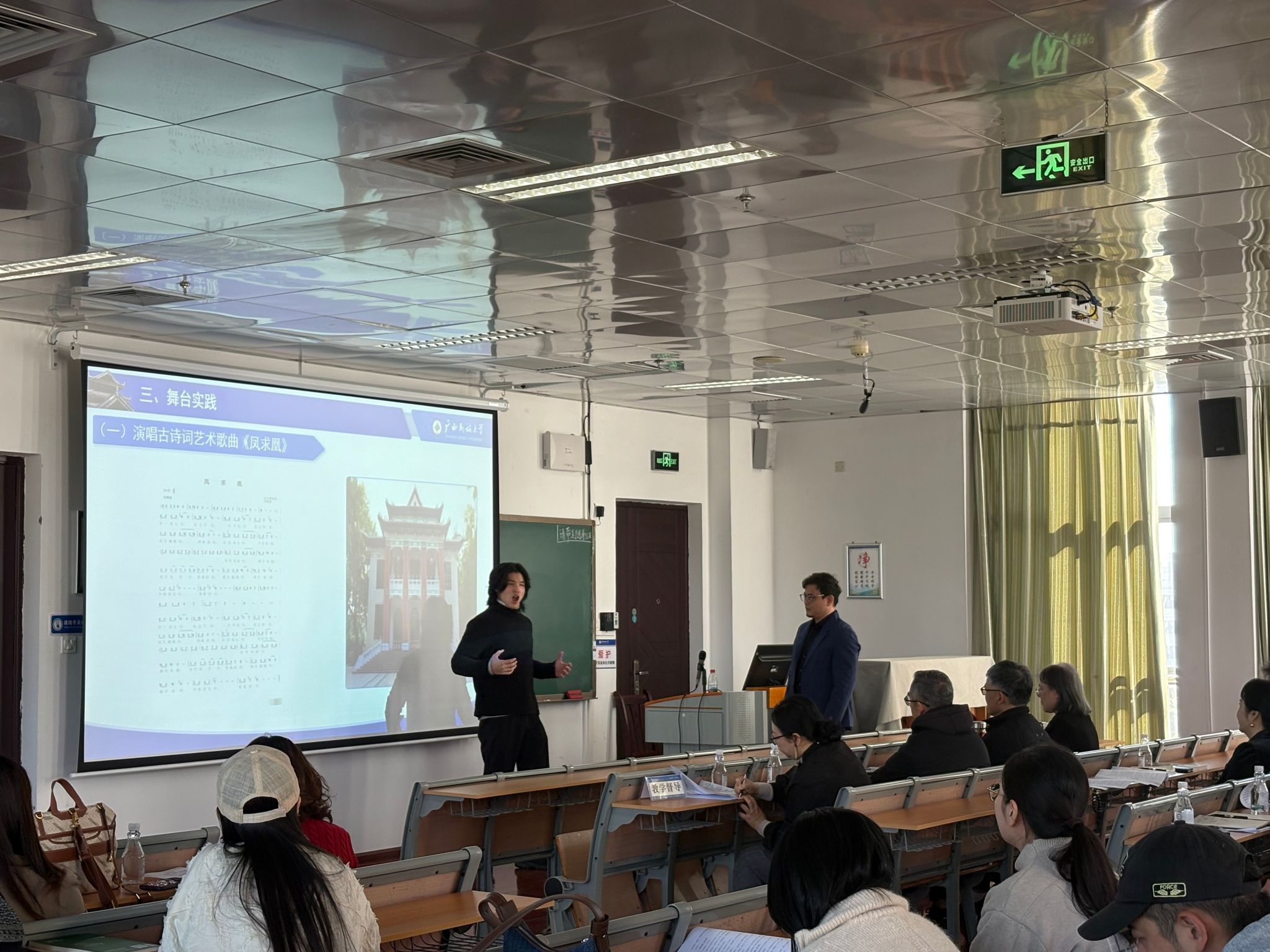 11月21日上午,广西民族大学“教学领航”示范课第十八场在东盟楼主楼508教室开展。本次示范课由音乐学院翁鹤老师主讲。教学督导、教务处/教发中心相关人员、艺术学院领导老师及各学院专任教师代表等到场观摩。